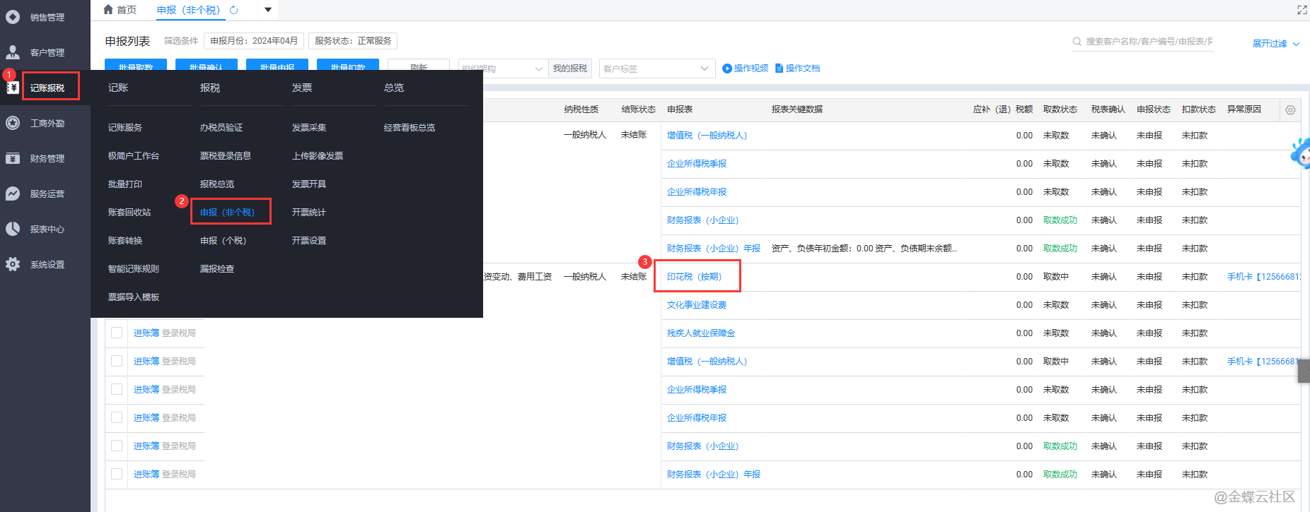 保持在【記賬報稅】模塊,進入【申報非個稅】操作界面;